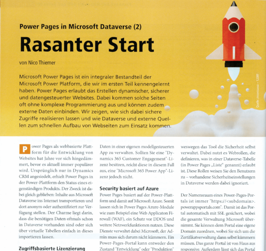 Die aktuelle Ausgabe des IT-Administrator 08/2025 enthält einen Artikel von mir zum Thema Microsoft Power Pages. Es ist der zweite Artikel in einer kleinen Serie rum um das Thema Dataverse. Wer mehr über Microsoft Power Pages und Dataverse wissen möchte, auch im Zusammenspiel mit Copilot Agenten, kontaktiert mich. Die ganze Zeitung kann hier gekauft werden: https://shop.heinemann-verlag.de/