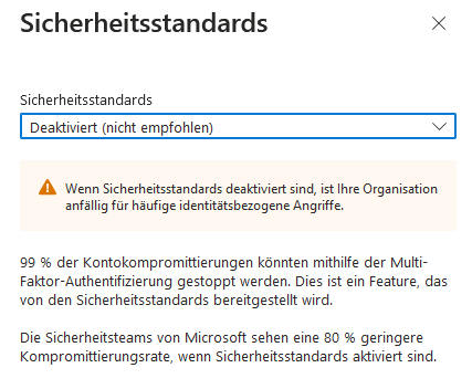 Wenn man auf diesen Link klickt, kann man die Sicherheitsstandards aktivieren oder, wenn diese durch Microsoft aktiviert wurden, auch wieder deaktivieren.
