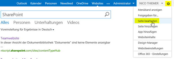Wenn Sie jetzt zu SharePoint gehen und testen möchten, steht IRM noch nicht zur Verfügung. Vielmehr muss dieses noch explizit für SharePoint aktiviert werden. Gehen Sie dazu in die SharePoint Verwaltung von Office 365 und klicken Sie dort auf Einstellungen.