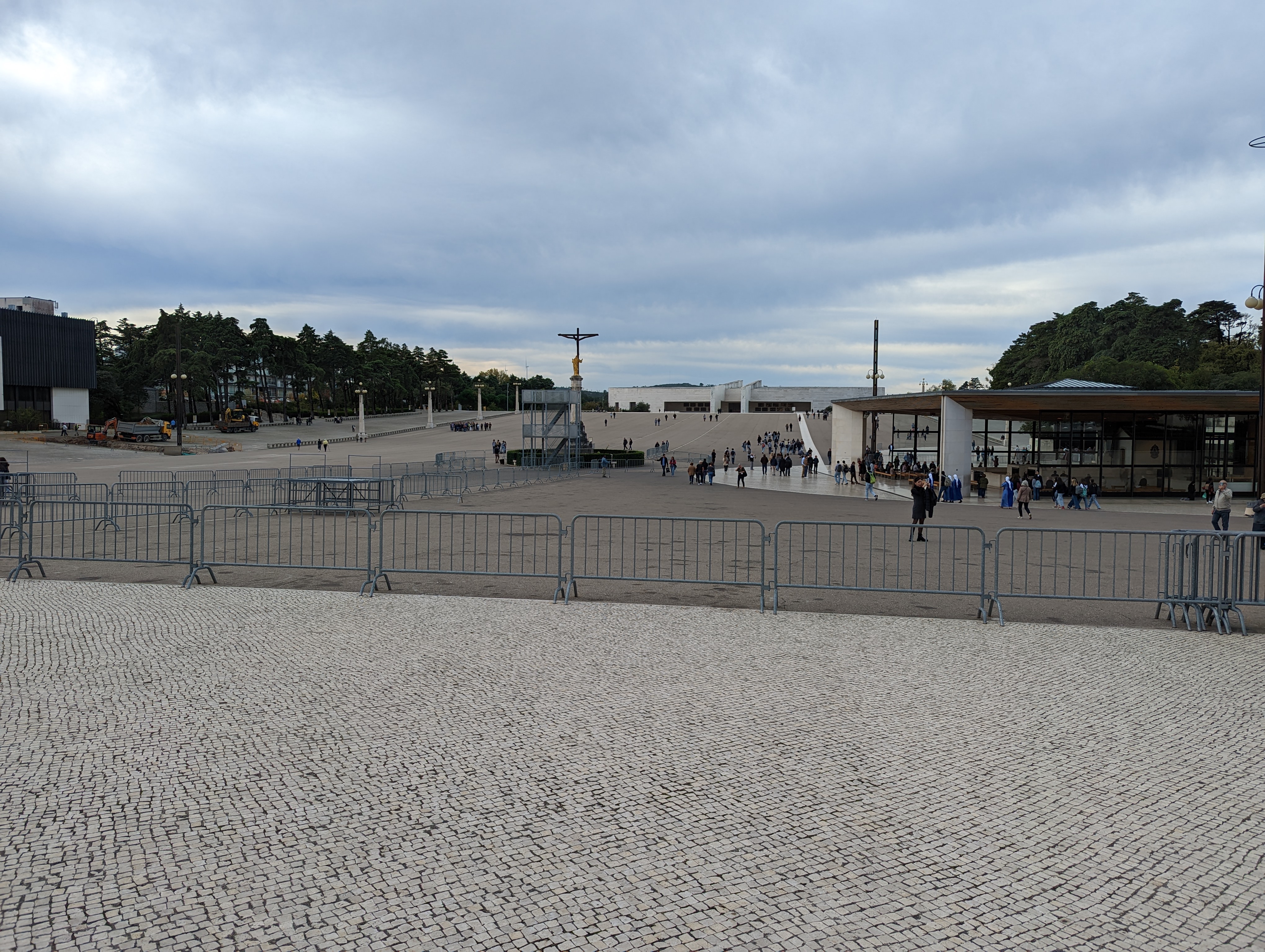 Wenn man in dieser Gegend ist, muss man sich natürlich Fatima anschauen, auch wenn man kein Katholik ist. Was man dort in die portugiesische Pampa gesetzt hat, ist, es gibt kein anderes Wort, gigantisch. Ein riesiger Platz für die Gläubigen, samt Infrastruktur und allen möglichen Nippes.