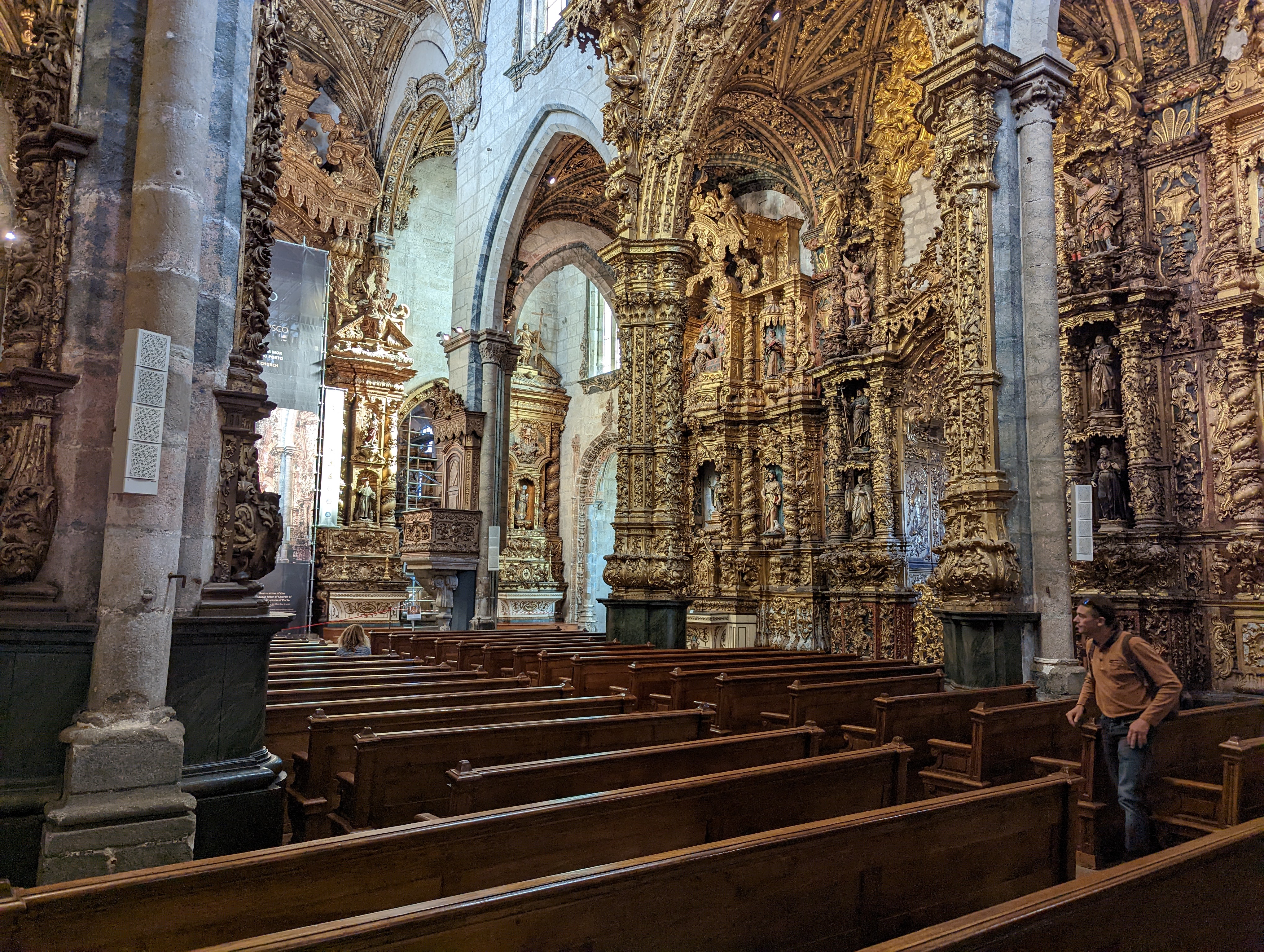 Aveiro ist eine Küstenstadt, welche von Kanälen durchzogen ist. Mit Gondeln kann man herumfahren. Da es aber immer noch regnete und kalt war, haben wir das nicht gemacht. Das macht aber nichts, weil allein die Altstadt ein Spaziergang wert ist. Gewohnt haben wir im 1877 Estrela Palace Hotel*. Empfehlung! Auch hier wieder war das Zimmer feudal mit Stuck und Schnitzereien.