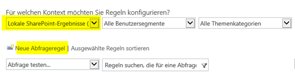 Um eine Abfrageregel für alle Ergebnisquellen verfügbar zu machen, erstellen Sie zuerst die Regel für eine beliebige Abfrageregel und klicken Sie dann auf Kontext.